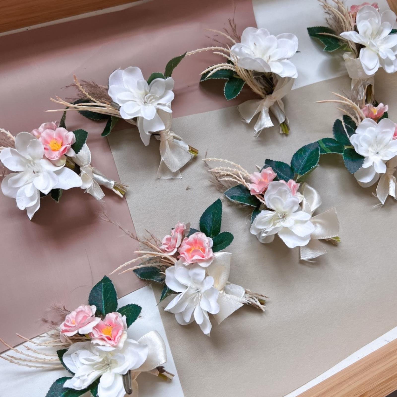 Includes: matching faux groom’s boutonnière + complimentary faux loose flowers for hair.